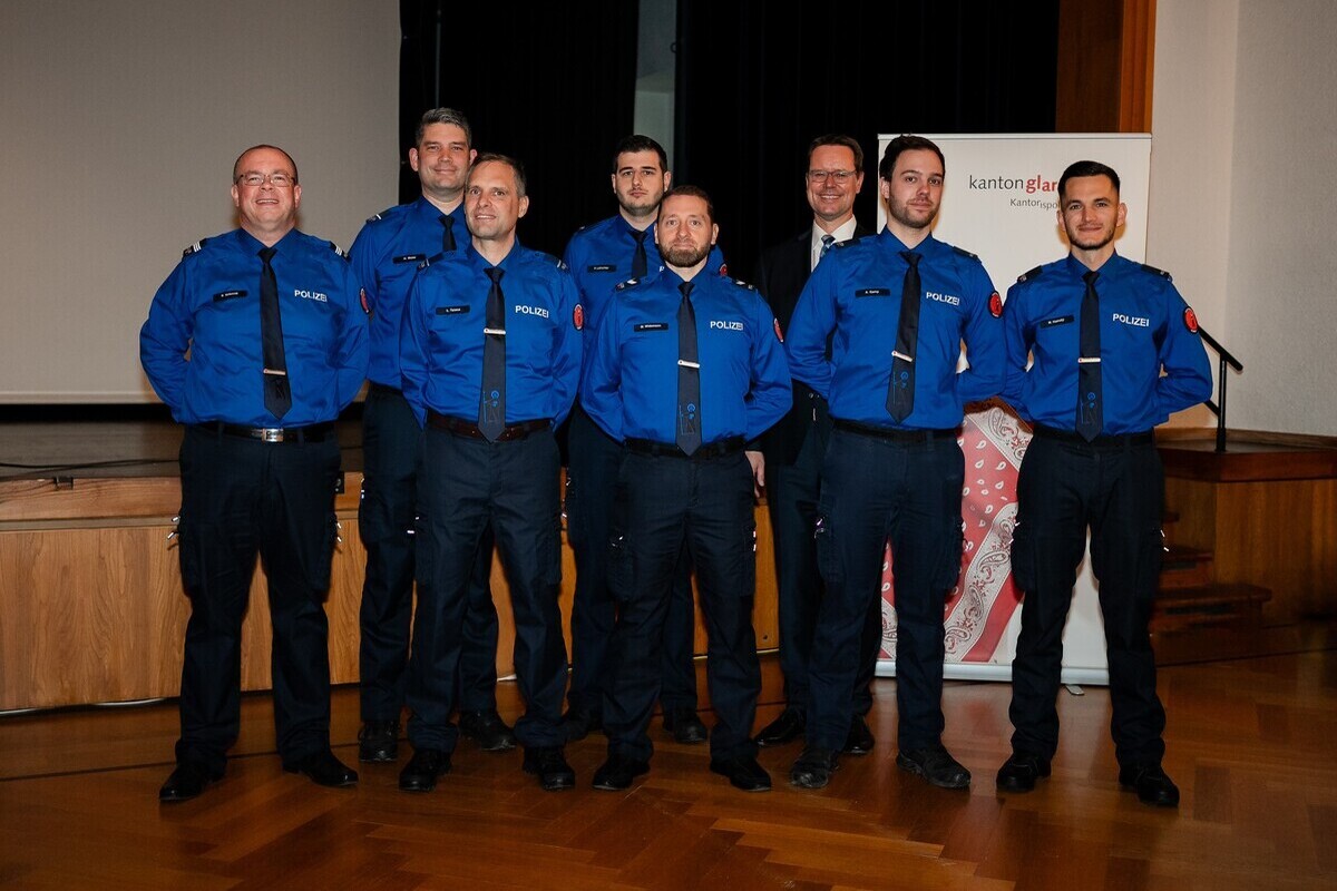 Feierlicher Tag bei der Kantonspolizei Glarus: Am Mittwoch wurden sechs neue Korpsangehörige vereidigt und 13 Polizistinnen und Polizisten im Dienstgrad…