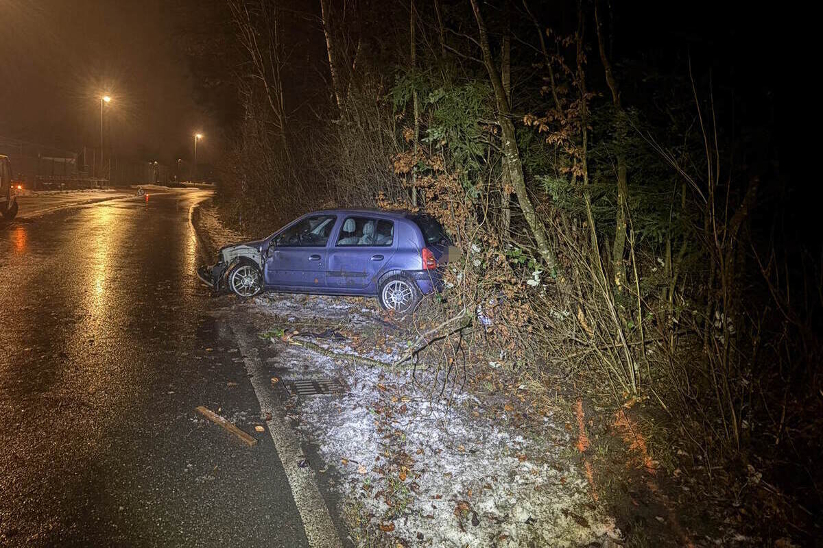 Das Auto kippte zur Seite. Der 31-jährige Autofahrer konnte sich selbstständig aus dem Auto befreien und wurde nicht verletzt. Die beweissichere Atemalkoholprobe ergab einen Wert von 0.59 mg/l.